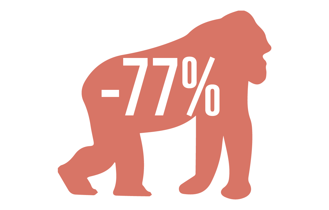 1955년 대비 아프리카그라우어 고릴라 전체 77% 감소
